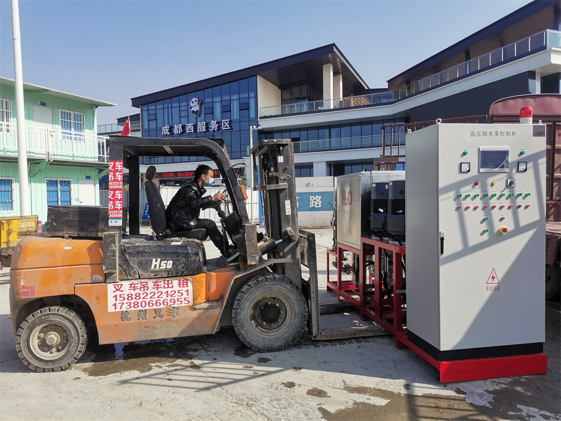 川西高速公路公司信息服務中心高壓細水霧項目,位于成都繞城西服務區,用于該公司一層監控大廳消防滅火。保護面積334平米,細水霧施工已基本完工。